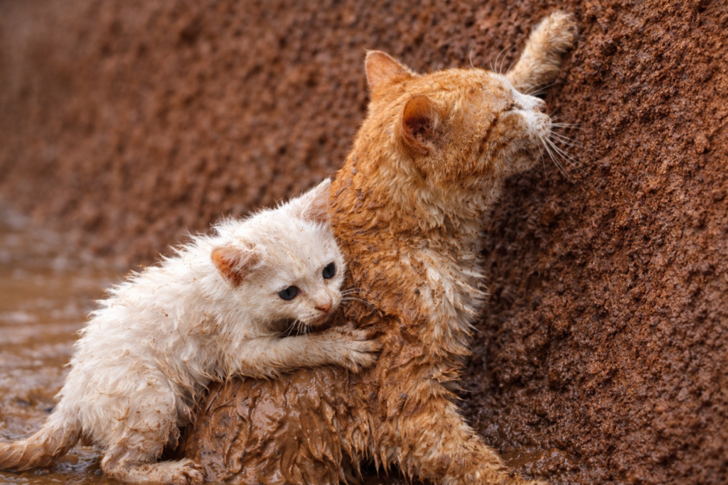 Kittens were trapped in mud