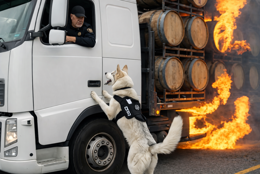 Brave dog saves truck driver from a disaster