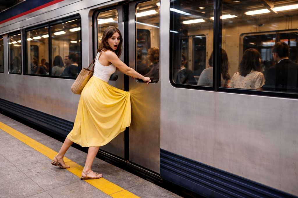 Unexpected Predicament It was a beautiful afternoon when she stepped out in her elegant dress, looking confident and radiant. The sun cast a warm glow on her, illuminating the intricate details of her gown. However, little did she know that a momentary lapse in attention would lead to an unexpected predicament. While navigating a narrow […]