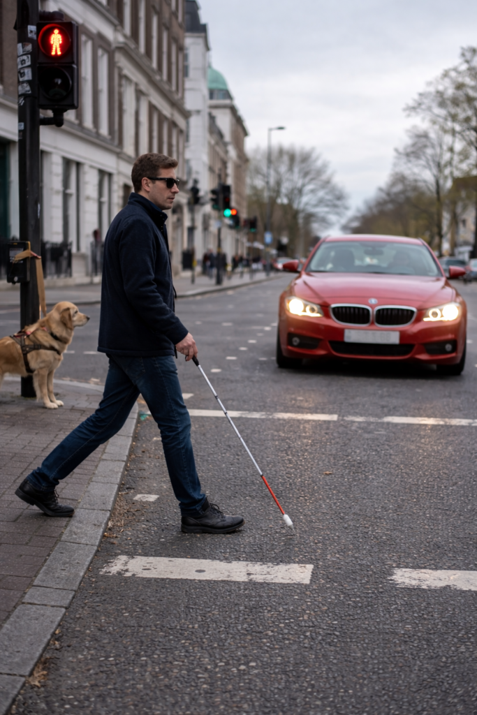 Last second decision saved the blind-man life.