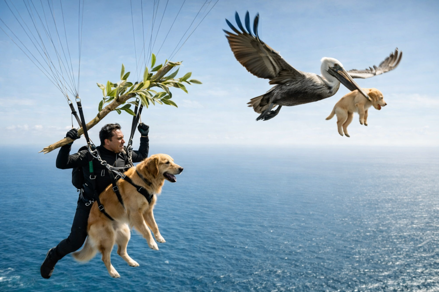 The Unlikely Heroes of the Sky In a remarkable incident that showcased the extraordinary bond between animals, a golden retriever became a true hero by