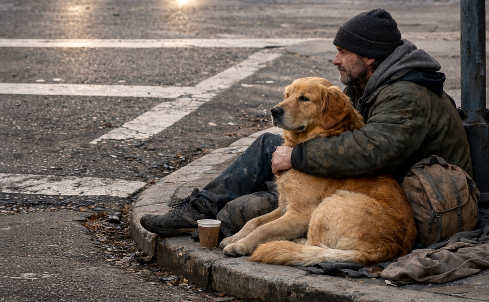 The Heartwarming Bond In a world often blinded by wealth and status, the story of a homeless man and his loyal golden retriever serves as