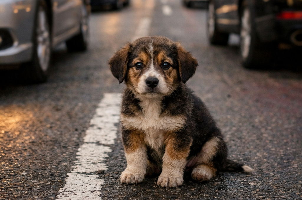 Tragedy Strikes In a heartbreaking moment, a young puppy was struck by a car, left unconscious in the middle of the road with no hope