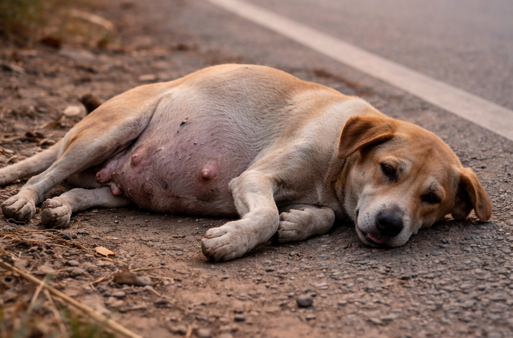 A Heartbreaking Situation On a fateful day, a mother dog found herself in a devastating position. Abandoned on the side of the road with her