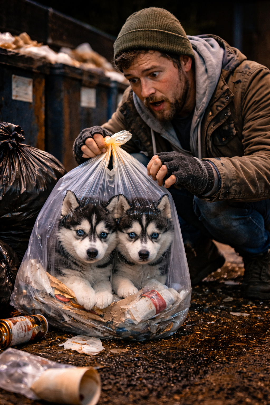The Heartfelt Rescue In an inspiring tale of compassion and determination, a homeless man transformed his life by saving husky puppies from a trash can.