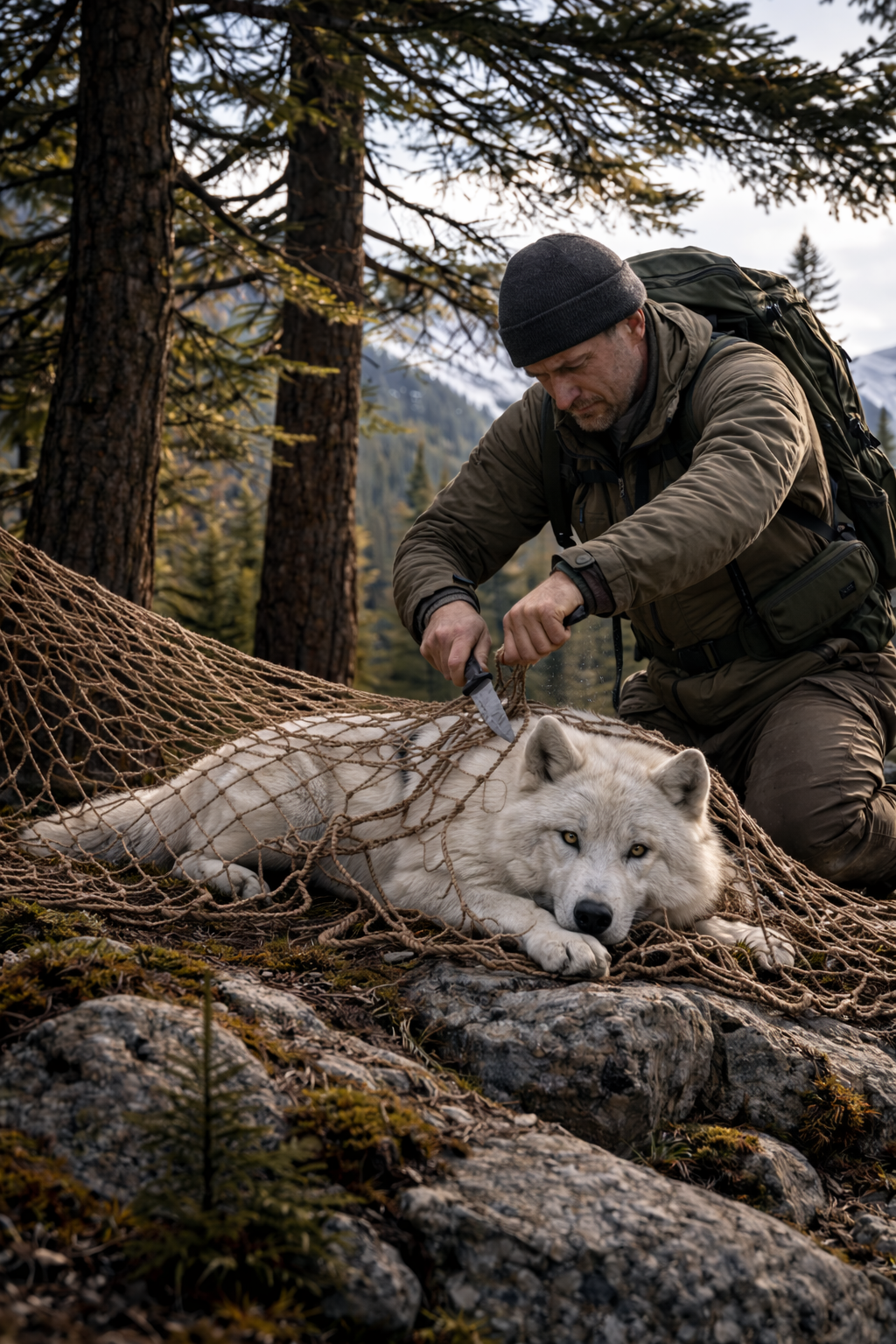 A Chilling Encounter In the heart of the mountains, where nature reigns supreme, a remarkable story of survival emerged. A majestic white wolf found itself
