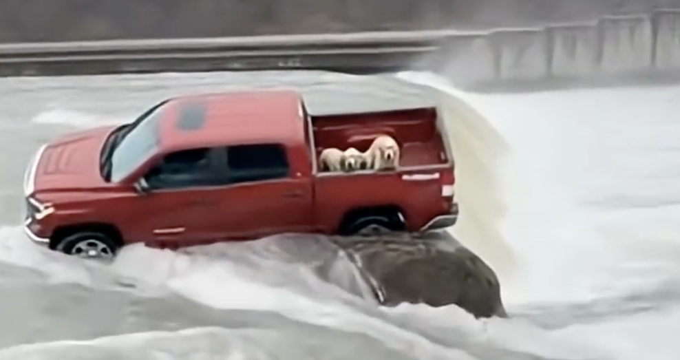 The Heart-Pounding Rescue In a gripping tale of courage, a red Toyota Tundra was swept away by a raging river, carrying with it a mother