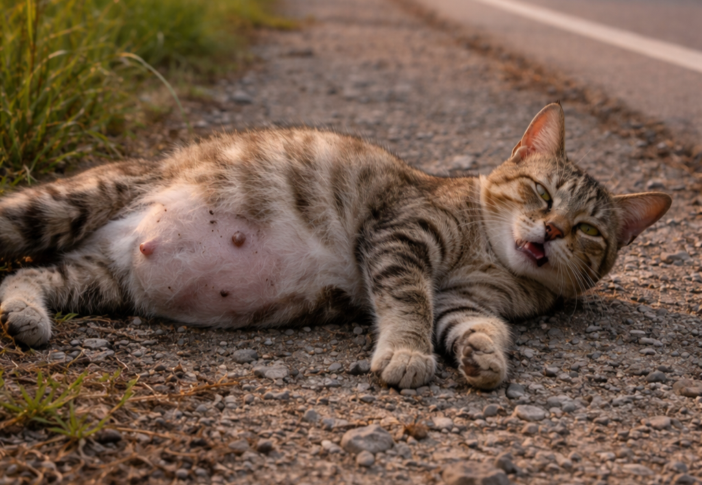A Heartbreaking Situation In a world often overshadowed by distress and neglect, a harrowing scene unfolded beside a rural road. A mother cat had become
